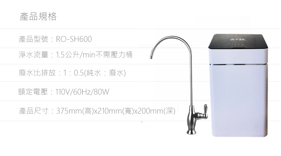 | RO-SH600櫥下型無桶直出式RO逆滲透純水機 | |